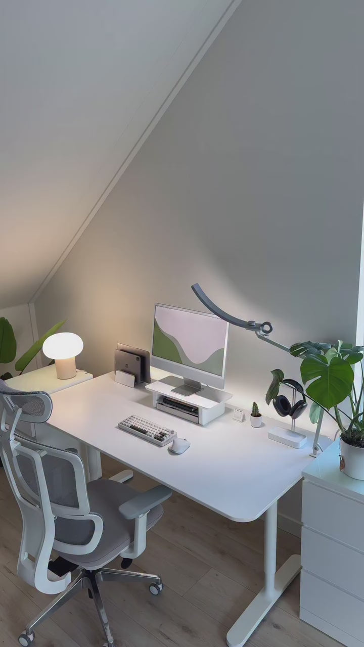 minimal desk setup featuring a desk shelf for monitor, headphone stand, and desk mat. The desk shelf elevates the monitor to the ideal viewing height, improving ergonomics and reducing neck strain. The headphone stand helps keep your desk clutter-free, and the desk mat adds a touch of style while protecting your desk surface. If you're looking for a grovemade alternative, these simple yet effective accessories are a great option. Upgrade your workspace with these must-have desk accessories.