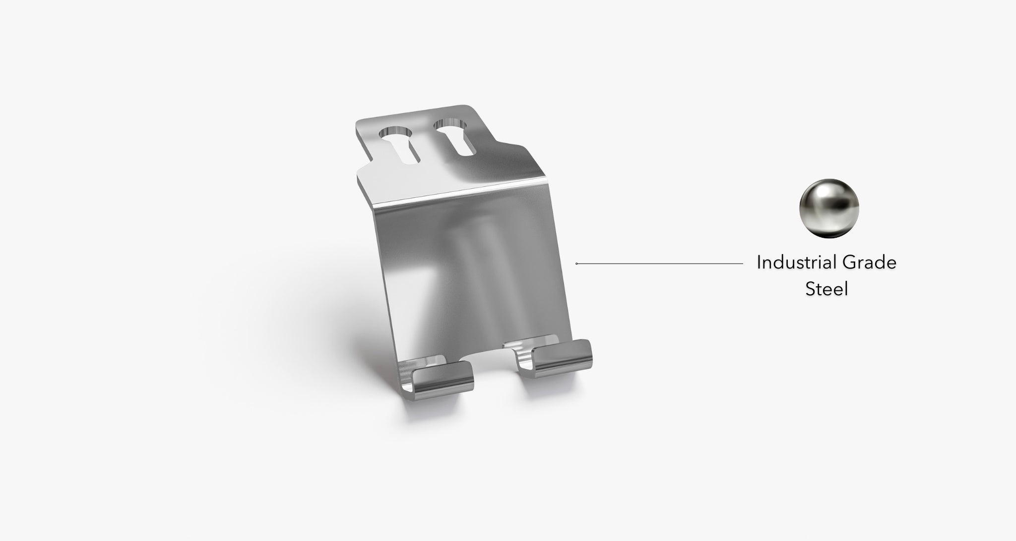 This phone/tablet holder is compatible with devices up to 1.4cm / 0.55" thick. With our innovative rail mount system, you have unlimited option to place your tablet on our v2.0 desk shelf track — without having to remove the tablet holder completely.
