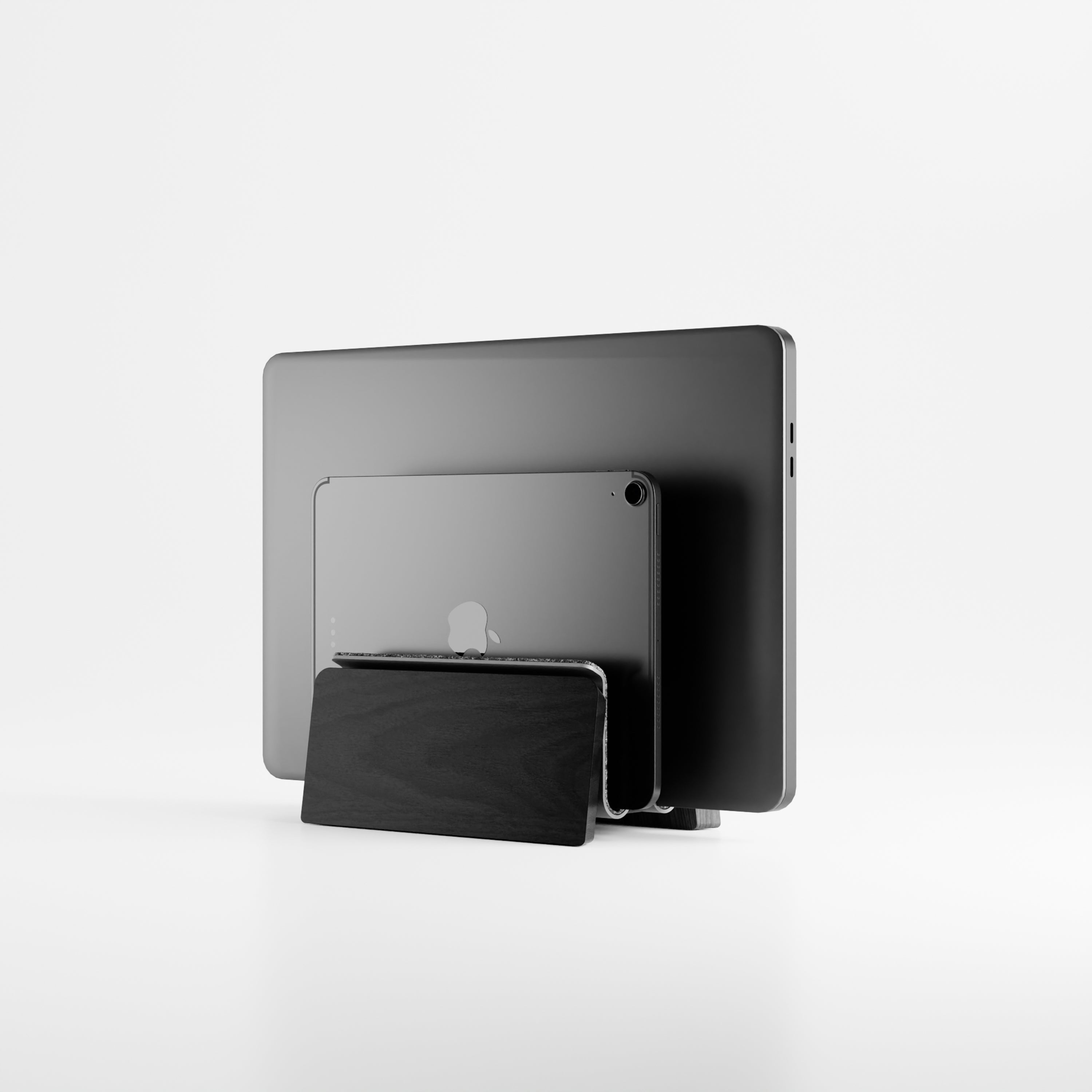 With its plush merino wool felt lining, the vertical laptop stand ensures a scratch-free experience, allowing you to confidently place or remove your device without worry.